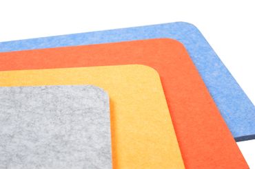 Estas placas acústicas absorben el sonido, y gracias a su versatilidad en formas y colores, crean ambientes acústica y visualmente mas confortables. Los paneles se pueden cortar de cualquier forma, y vienen en mas de 30 colores.